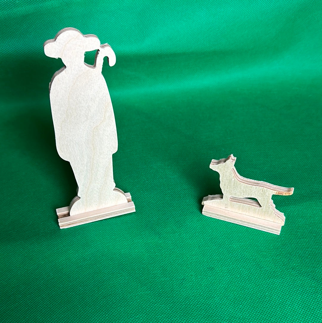 This 2D set of Baltic Birch plywood figures illustrates the expanded Parable of the Good Shepherd, which includes the wolf and hireling (John 10:3b-5, 10b-16).